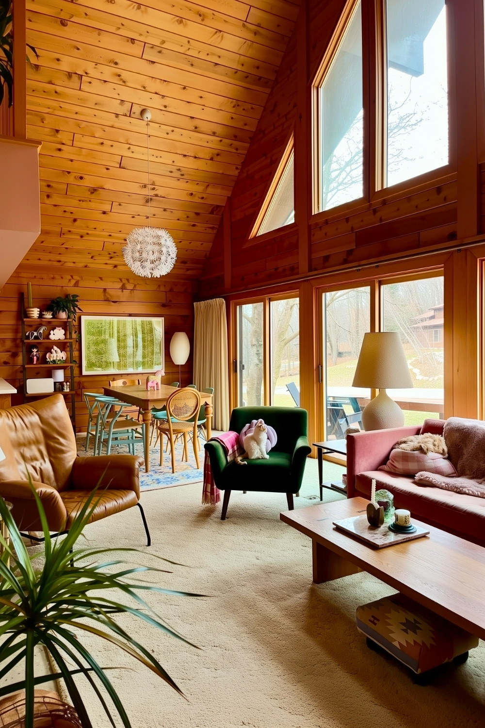This specific narrow and long room feels balanced because the fireplace and wood tones create a central focal point. I’m drawn to how the soft seating makes this a true dual purpose living dining room without feeling stiff. Another shot by u/dirtandglass proves that cabin style can work perfectly for everyday comfort in an open concept home.