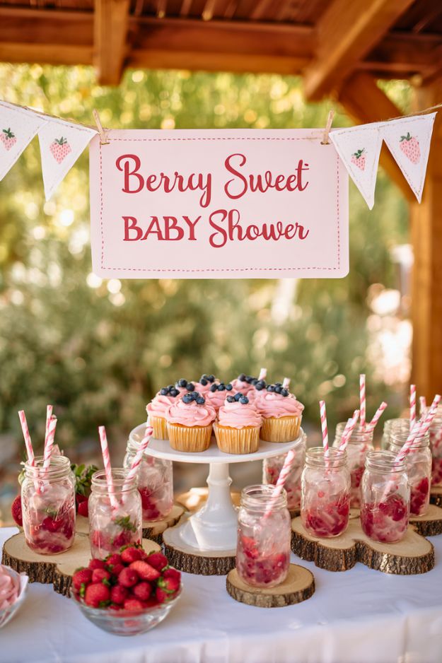 Strawberries, berries, lemonade drinks, and outdoor wood accents naturally fit warm weather. You could easily recreate this in a backyard, park, or garden with very little effort.