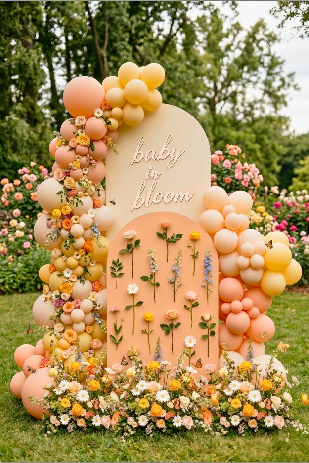 This is one of the most simple and fun baby showers I always think of! The combination of yellow and white balloons with a hint of greenery brings such a warm, welcoming vibe. I can totally picture this as the perfect setup for a garden baby shower or a bright brunch.