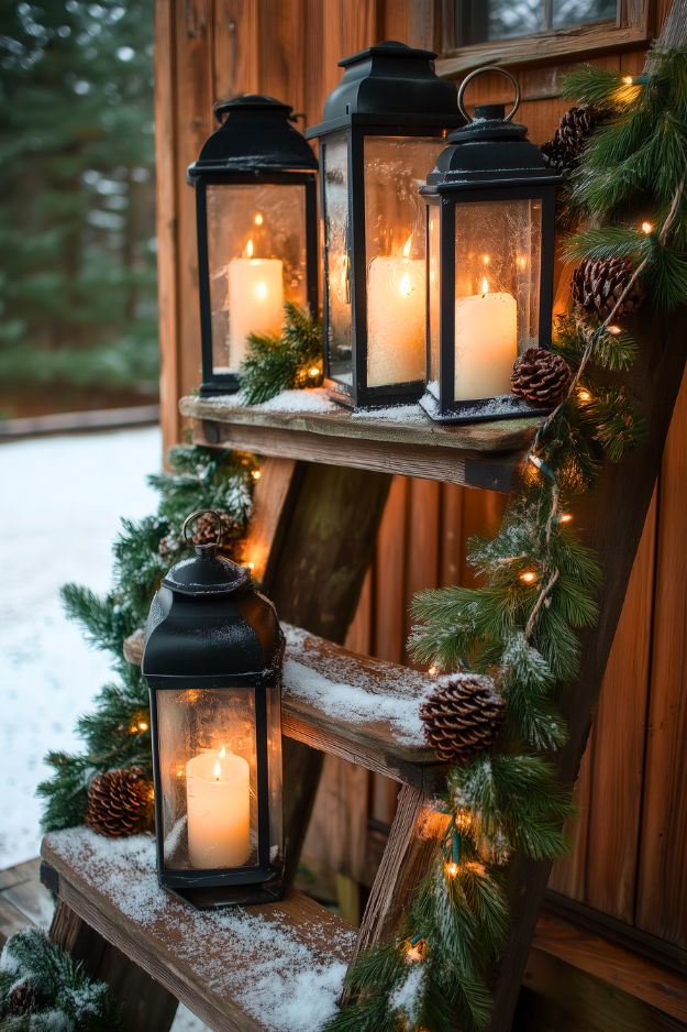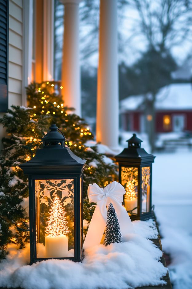 Lanterns are a must-have for Christmas decor! They’re perfect for your porch, offering both functionality and a warm, cozy glow that adds to the festive ambiance.