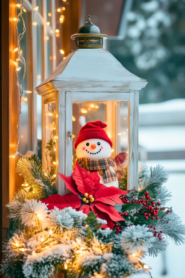 Placing a snowman inside your lantern brings a lively and adorable charm to your holiday decor!