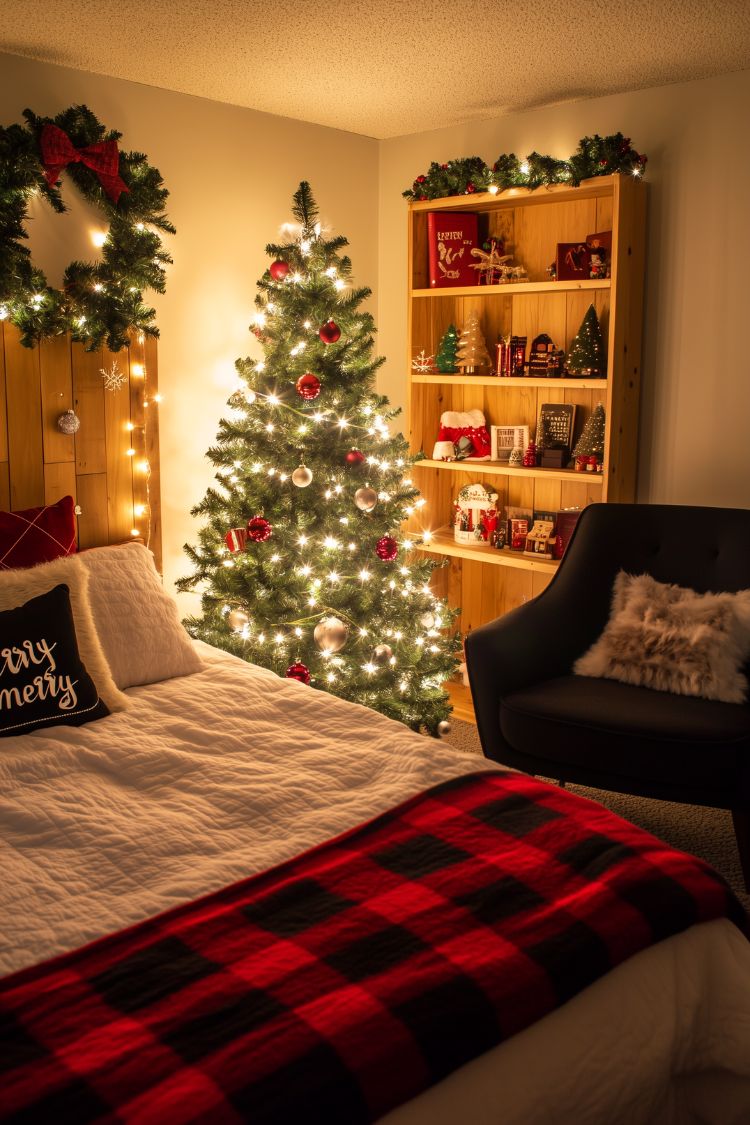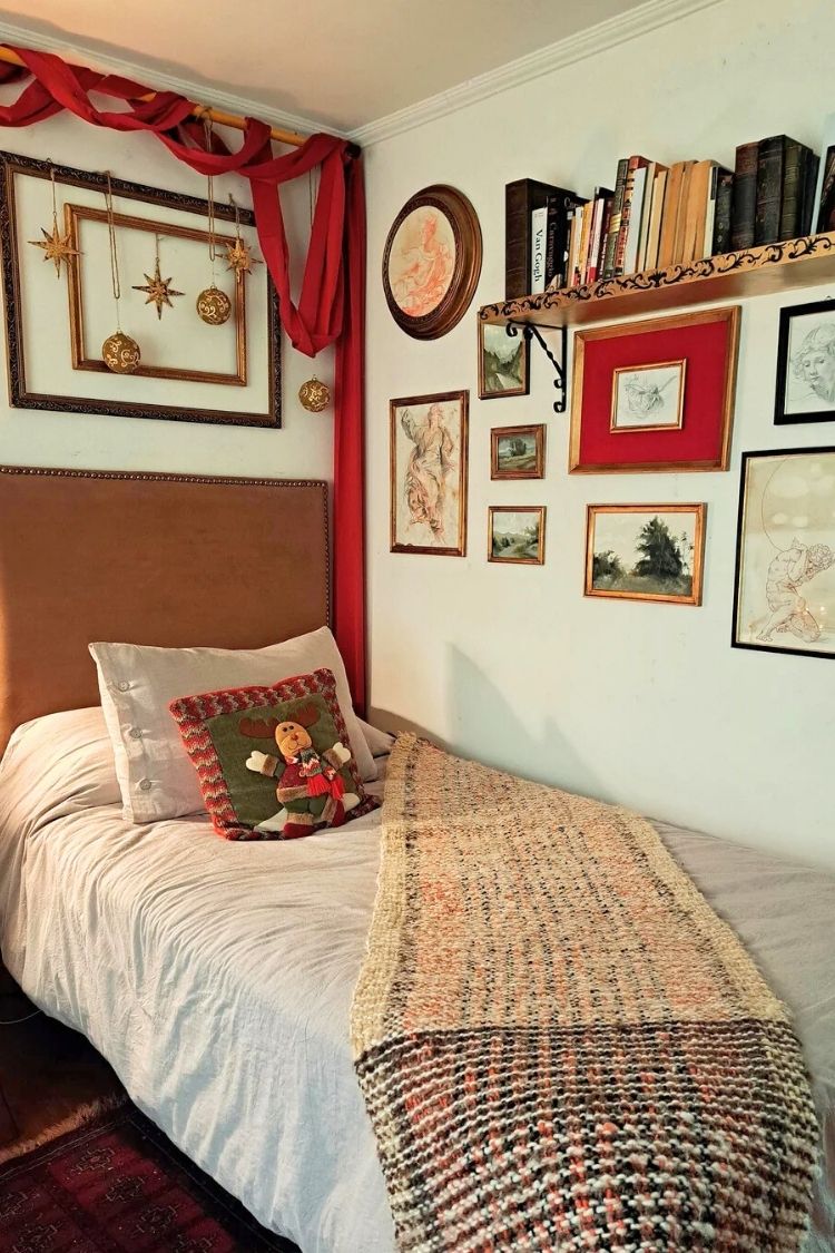 I like how the setup of u/DejectedSoul proves you don’t need a fully decorated tree or over-decorating to feel festive. With just a few items, such as old books, framed pictures, and simple ornaments, you could have brought a Christmas vibe to your sleeping area. You can even add some red ribbons to make your bed more stunning.