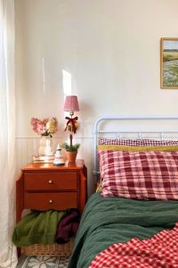 If Mariah Carey has “All I want for Christmas is you”, for me, all I want for Christmas is this room that I saw on Reddit. It’s super cozy as a boy’s room, ngl. Just look at the way he decorates it. The scarlet plaid blanket and the hanging garlands on the ceiling pair so well with the entire bedroom. Every single detail is carefully cared for and adorned. He creates his own place without being overwhelming – warm, lively, and full of coziness.