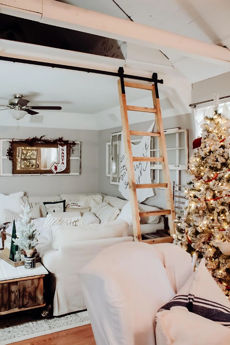 I can tell this bedroom is just like a scene cut from Pixel’s movies. The mixing of baubles and big ties never goes wrong for this holiday. The elegant lights and classical ornaments hanging on the moderate pine tree just give me chills, and that is what I need for Christmas. Even if I don’t have any trees, the matching between pillows and blankets is just right enough.