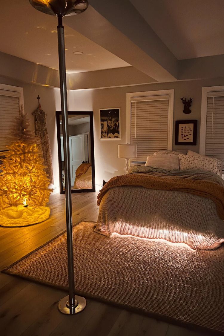 This year, you can try something new for your cozy nest, such as putting on a golden Christmas tree. I’m just obsessed with the idea of tucking the pearly light around under the bed. That soft glow makes the whole space shimmer. This charming room I found on Reddit just triggers me so much to decorate mine. I literally can’t wait until Christmas to turn my bedroom into something special like this.