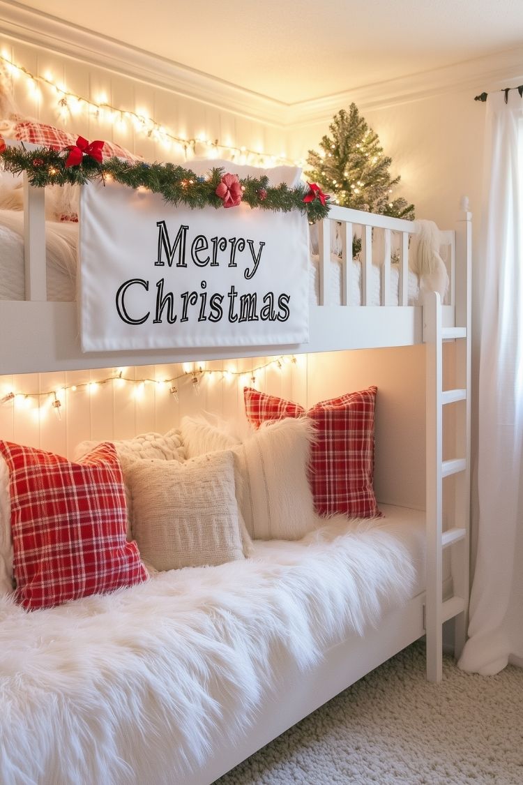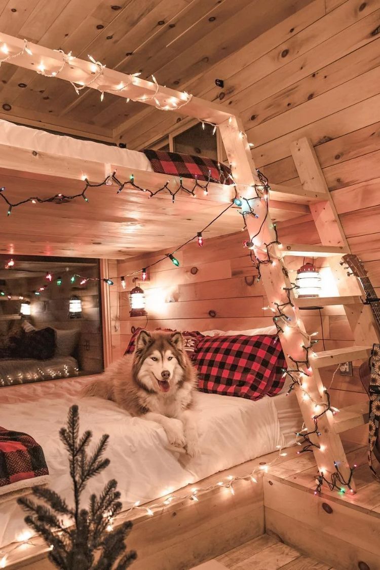 This bunk bed setup speaks to me. Tons of pillows and the furry bedsheet are definitely all I need for Christmas. I’m just so into the sense of being surrounded by my favourite things on the bed. The banner goes quite well with little garlands around the rail, which just brings the holiday vibe to the whole room. I can literally sink into and never want to leave.