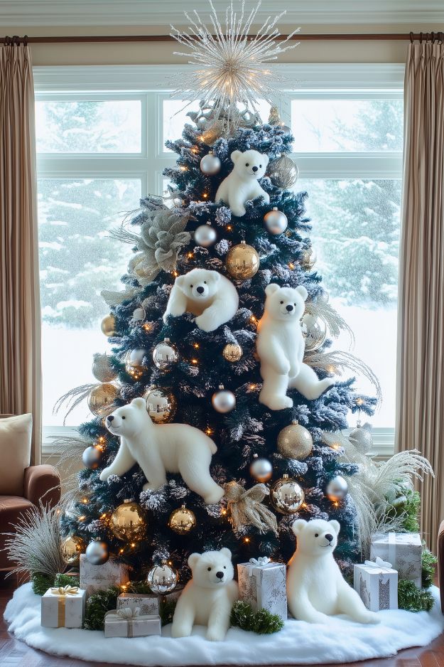 The way the crisp white ornaments pop against the dark branches and shiny silver details makes it look clean and expensive without being over the top. It feels modern, confident, and a little intimidating in the best way. The soft lights pull everything together and give it just enough warmth so it doesn’t feel cold.