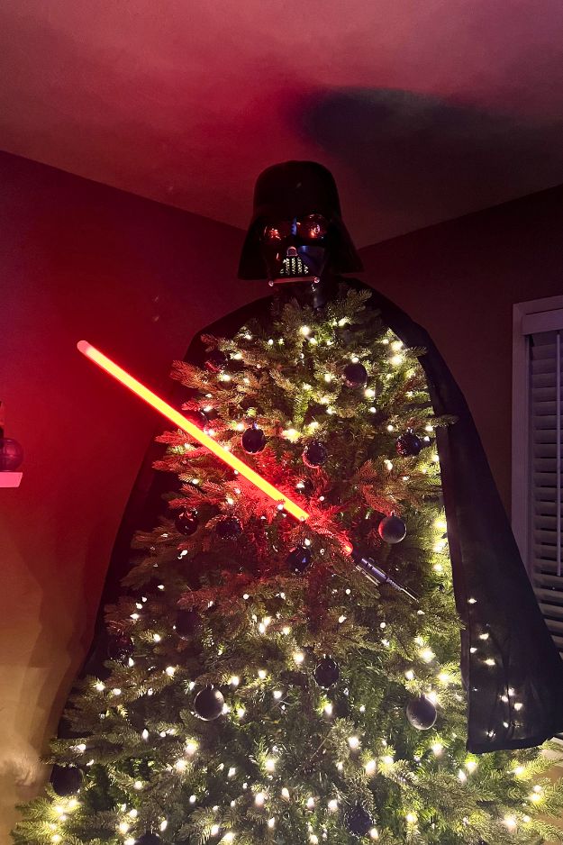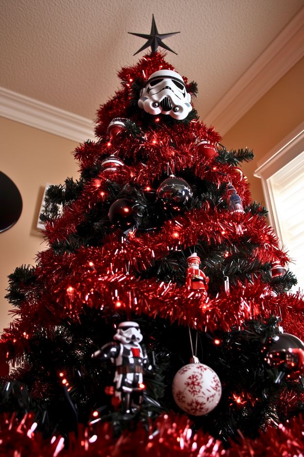 Not gonna lie, black Christmas trees will always feel a little bold, but that’s exactly why I like them. It feels modern and a bit rebellious without trying too hard. I like how the lights and ornaments stand out way more against the dark branches, it makes everything pop. Like this Star Wars themed tree, bold and unique.