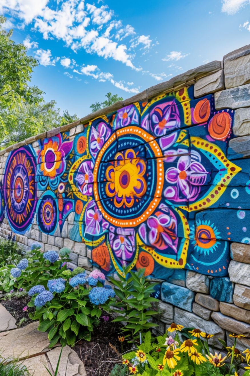 Cultural themes will definitely add depth and interest to your stone wall. Think about intricate mandalas, tribal patterns, or oriental landscapes. These designs celebrate different cultures and traditions, bringing a sense of history and richness to your backyard. There is no doubt that cultural murals transform your outdoor space into a global showcase of art and heritage.