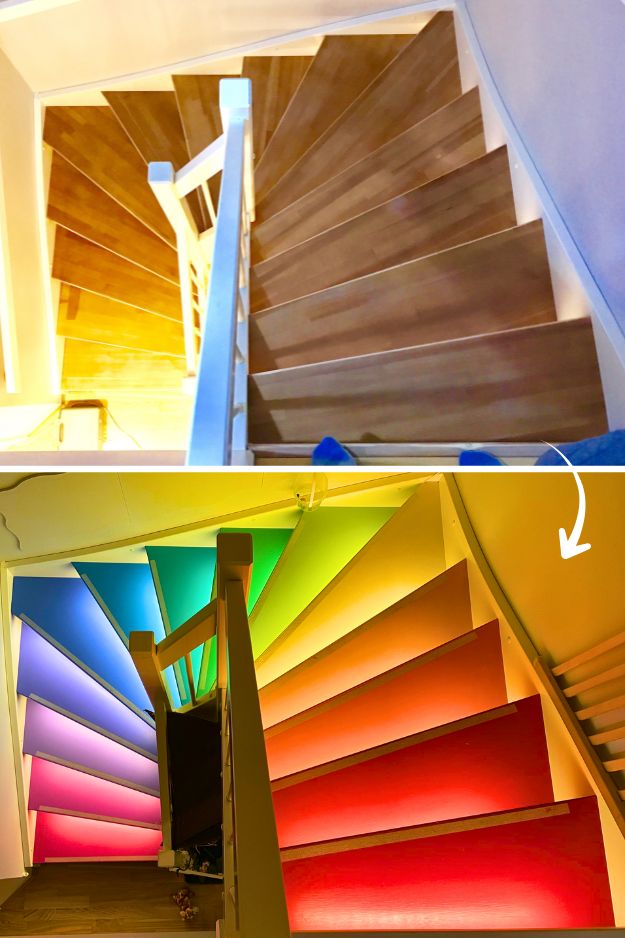 What makes u/BinBender’s staircase so fun is the combo of rainbow-painted treads with crisp LED lighting, I couldn’t help but smile.