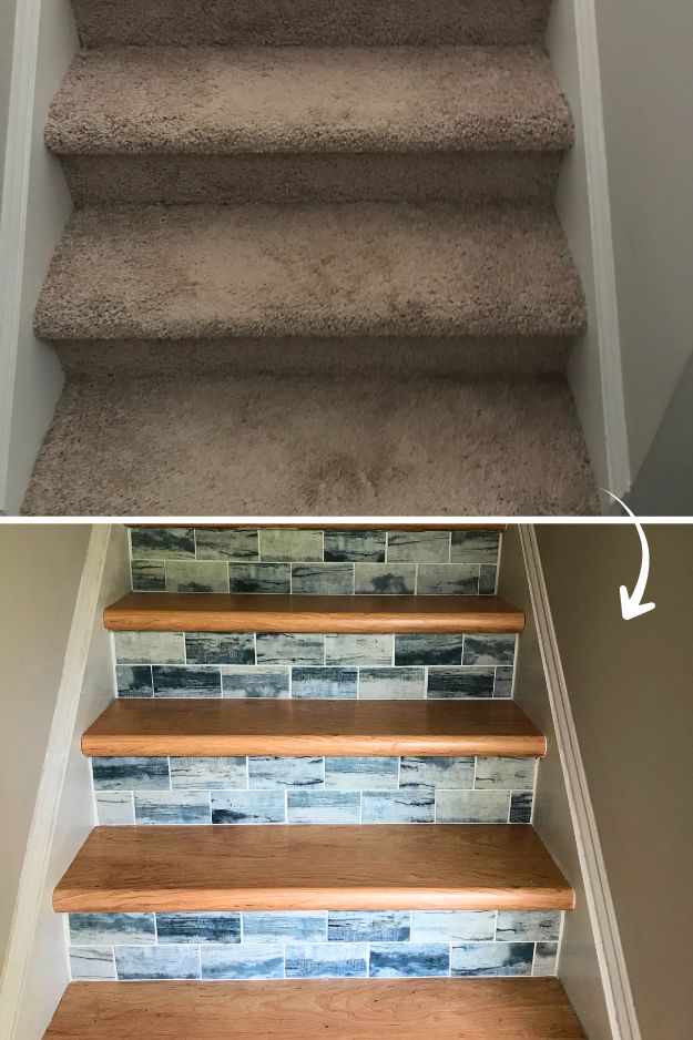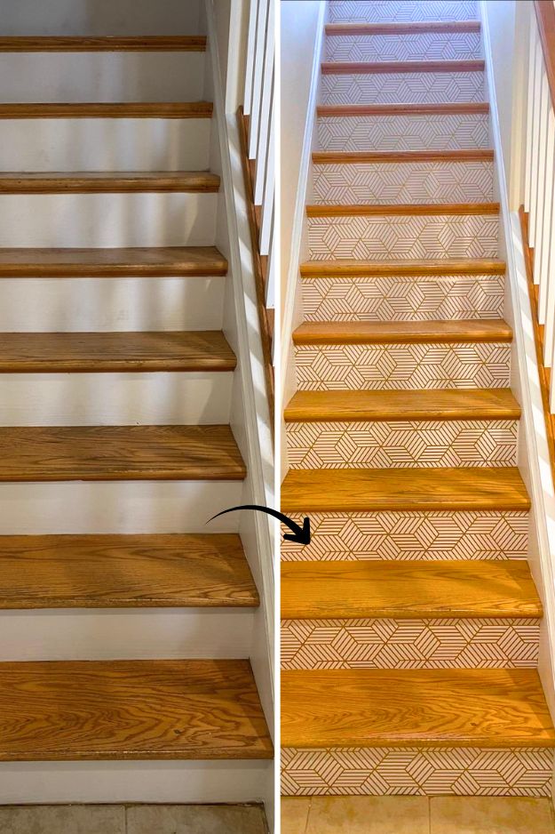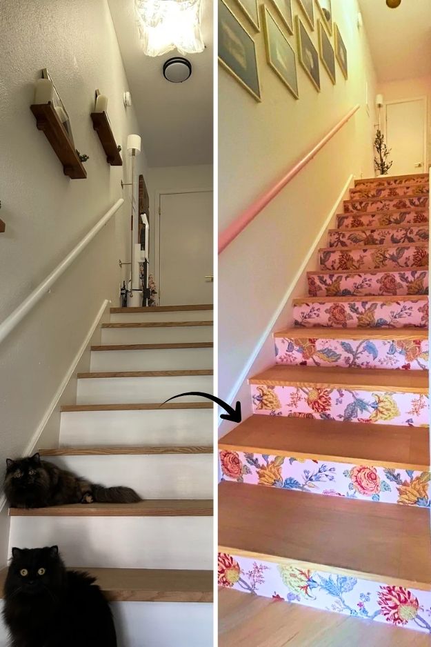 u/madlibs really showed how easy it can be to give stairs some personality without going full-on remodel. She just grabbed some removable wallpaper, cut it to size, and stuck it on the risers, done. Because it’s peel-and-stick, it’s renter-safe and easy to change if she ever gets tired of the look.