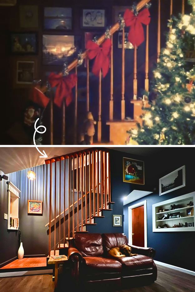 This before-and-after from r/HomeDecorating really split opinions. The old staircase had that classic 90s look, oak everywhere. For some, it felt warmer and more nostalgic. The remodel swapped it out for black-and-white contrast with Benjamin Moore’s Metropolitan Gray on the walls. Some people found it a bit cold, but honestly, it’s a fair update if that orangey oak isn’t your thing.