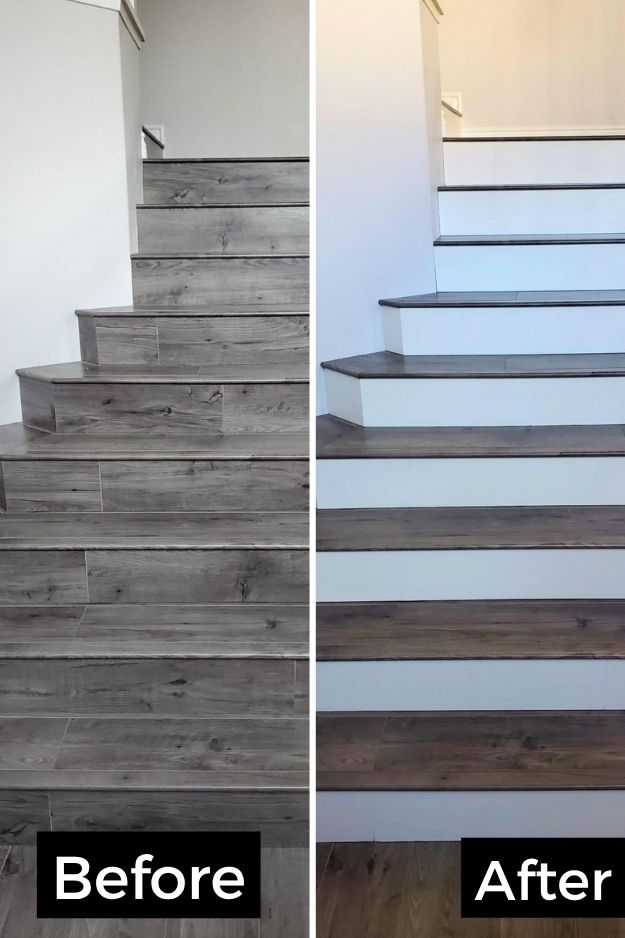Small DIY changes can make a big difference. They painted just the risers on their laminate stairs, using a primer made for plastic and leftover baseboard paint, and the result completely changed the look. I think that’s much safer now that each step is clearly defined. Credits to Eloquent_Macaroni
