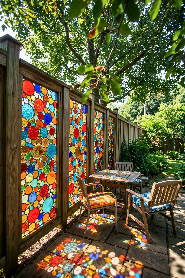 This is the kind of spot that completely changes how a backyard feels, like you didn’t just add a fence, you created a whole mood. The colors hit during the day, and suddenly the ground turns into this soft, glowing mosaic, and I can already tell I’d end up sitting here longer than planned just watching the light move.