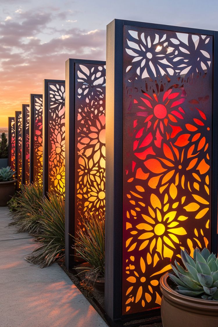 What I like most is how this fence works both during the day and at night. In daylight, it reads as modern metal decor, but once evening comes, the whole thing lights up like a lantern wall. It feels like a nice blend of modern design with a soft, almost boho warmth.