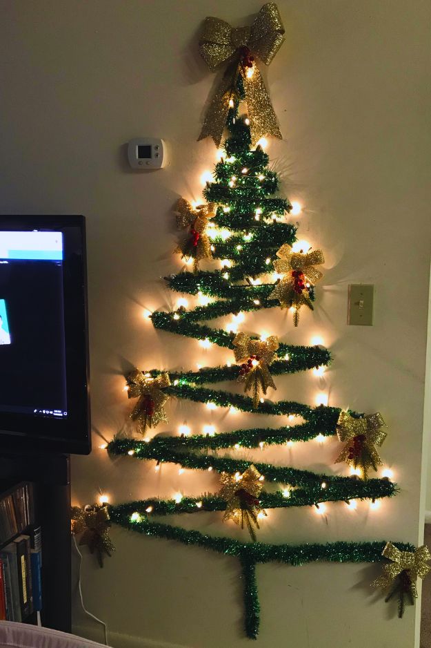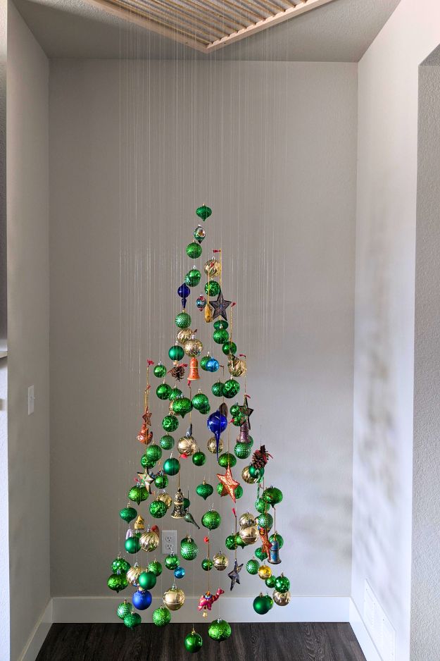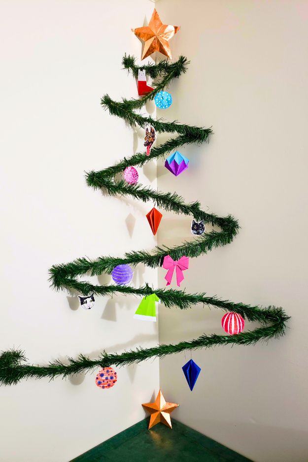 That’s actually what makes this setup so smart, it’s practically child-proof and cat-proof. Since the “tree” is flat against the wall, there’s nothing for little hands to topple or pets to climb. The handmade ornaments are lightweight too, so even if one comes loose it’s not a big deal.