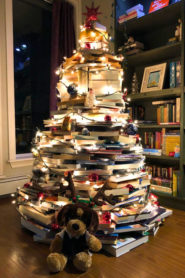 I’ve seen plenty of book piles before, but bobrock93’s mom turned hers into a Christmas tree and it’s genius. The bindings all face inward so it actually reads as a sculptural shape instead of a stack, and she even built in a stabilizer so it wouldn’t topple like Jenga. String lights finish it off, and thankfully they’re LEDs so the whole “fire hazard” worry is basically moot. What I love most is how it balances without any needles, I’d definitely copy this one.