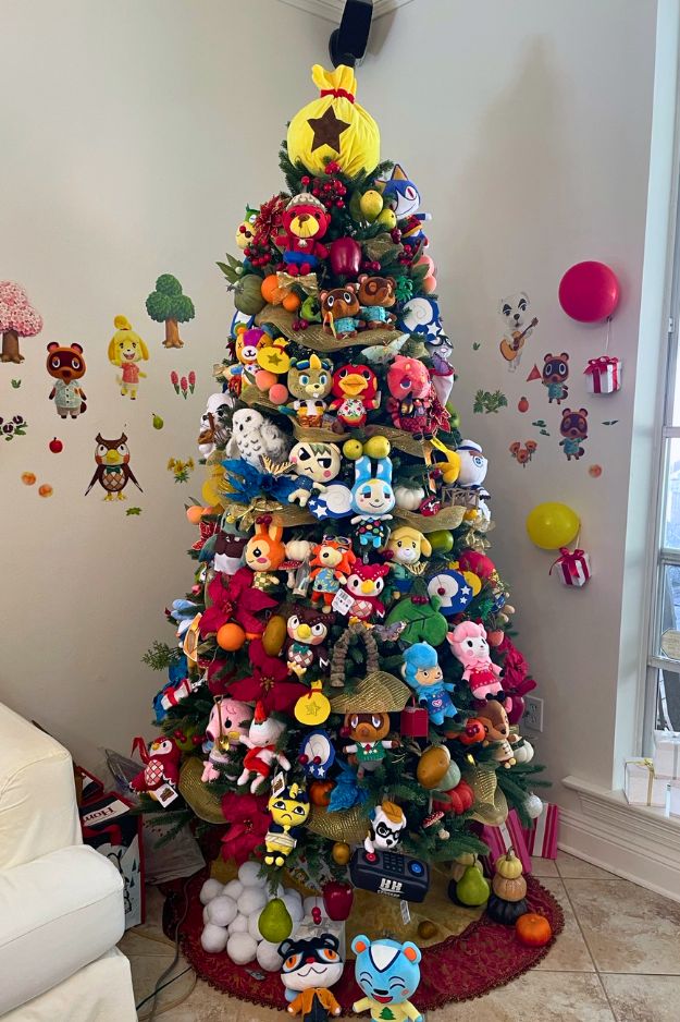 I couldn’t stop smiling at this Animal Crossing Christmas tree, well, technically it’s more of a plushie tower dressed up as one, but that makes it even better. Grandma went all in, layering the tree with villagers, bell bags, fossils, even a snowy owl. They even brought in DIY ornaments and little details straight out of the game.