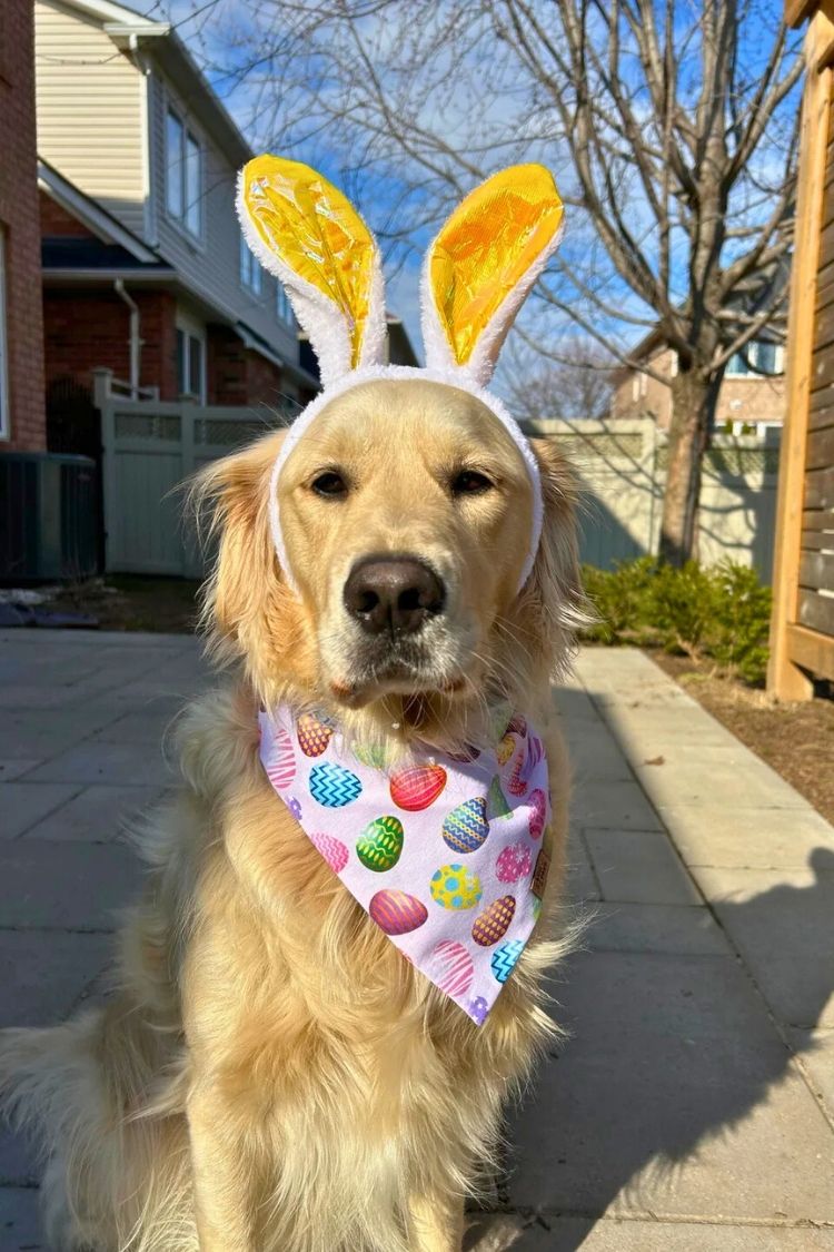 I just really love GoldenTriver’s smile. Does anyone notice that these breeds are really suited to spring, especially the Easter Holiday? The pastel bunny ears are pairing so well with him. Just look how happy he is, and I can say that’s all I need for a good photoshoot.