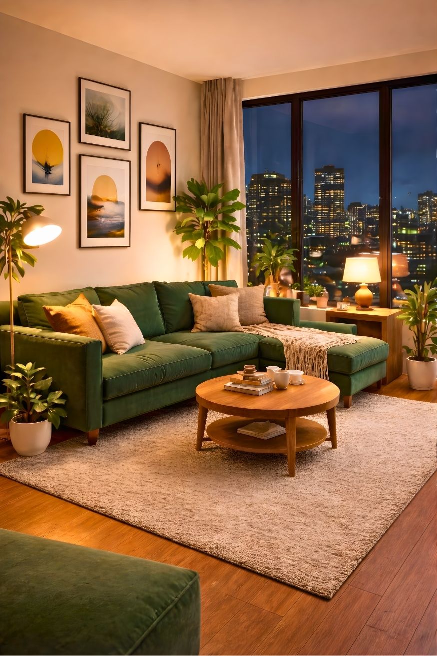 I swear, coming home to a space like this just hits different. It’s got that perfect “lived-in” charm that makes an emerald sofa feel less like a museum piece and more like your favorite nap spot. The secret to getting this is the mix of plush textures and soft, ambient lighting that turns the bold green into a warm hug.