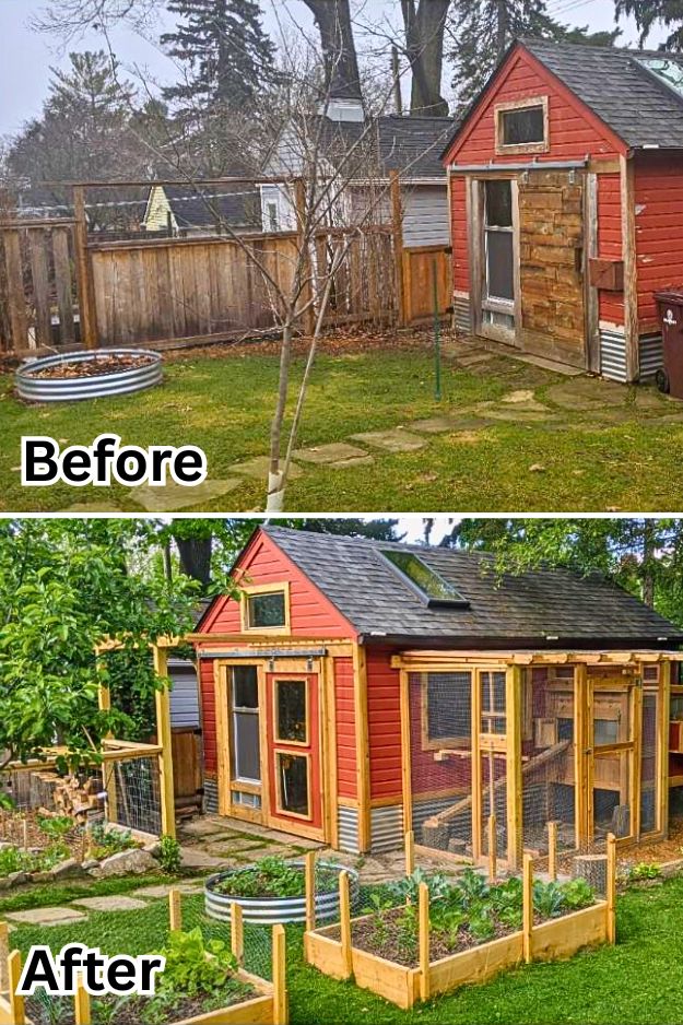 While I was busy making dalgona coffee during quarantine, u/purple_sack_lunch went all out and turned an old garage into a home office that looks straight into a chicken coop. It’s got raised beds, DIY planters, and just four chickens, so it stays surprisingly clean. Honestly, I’d probably spend more time watching “chicken TV” than actually working, but it feels like one of those projects that made lockdown a little brighter and still pays off every day.