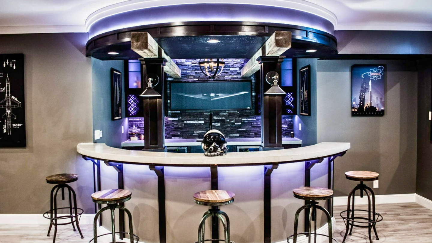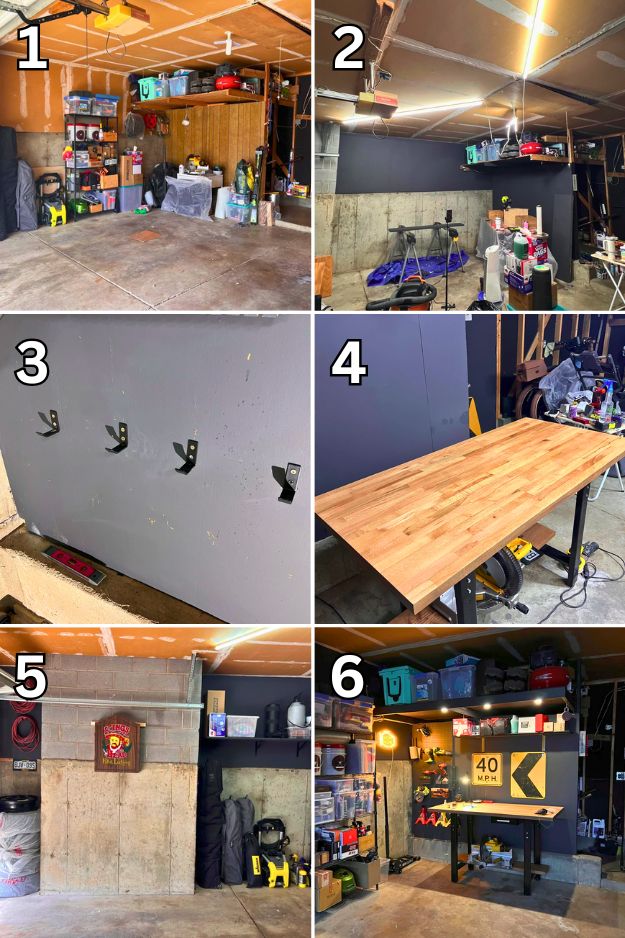 Amberfaye pulled off a killer surprise makeover while her husband was away, patched and painted the drywall in Behr’s Cracked Pepper, added shelving, built a butcher block workbench, and lit the place up with LEDs. She even snuck in fun touches like a Fireball dispenser, a check engine light sign, and a vintage dartboard. He was thrilled, but I was wondering if he’s gonna find the random screw he left on the corner shelf back in 2019.