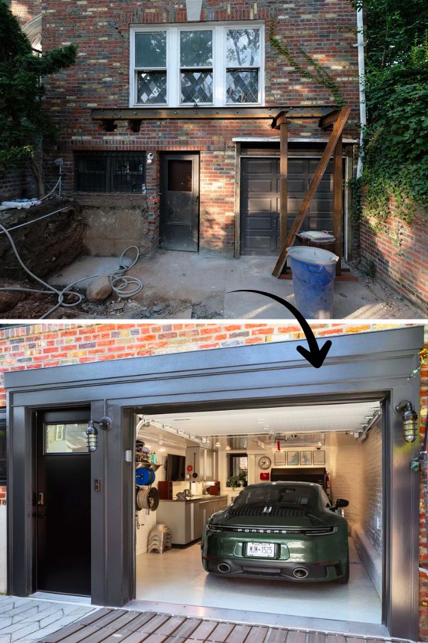 It’s small, but with 25k lumens of LEDs and just enough room to get a 911 on jack stands, it feels more like a finely tuned workshop than a storage box. I had to swipe back and forth a couple times just to be sure it was the same house, what a wild transformation by brianja