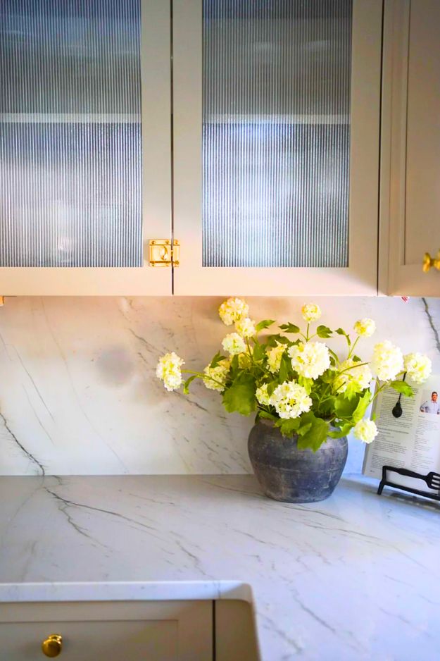 Those flowers make the kitchen come alive, adding a little charm and freshness that changes with the time of year. It’s a small touch, but it turns a stylish kitchen into a space that actually feels lived in.