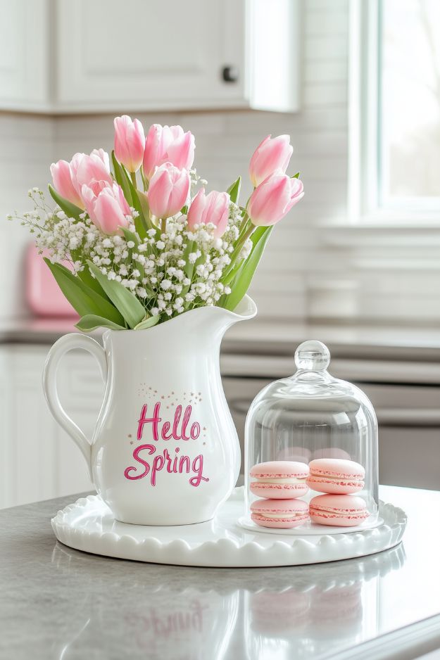 I’m really digging how clean this setup looks, the vibrant pink from the tulips, the simple white pitcher, the bright countertop, and that soft light all come together in such a fresh way. It doesn’t try too hard, but it totally says hello spring in the prettiest way possible.