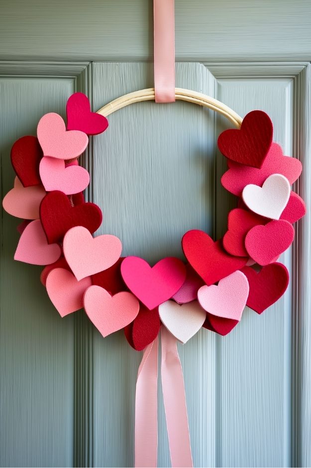 This little felt heart wreath is so sweet it almost convinced me I’m the type of person who organizes craft supplies by color. Honestly, if someone told me they made this in ten minutes with Dollar Tree felt, I’d believe them and also immediately feel bad about my own cutting skills. I found something similar on Etsy if anyone’s interested.