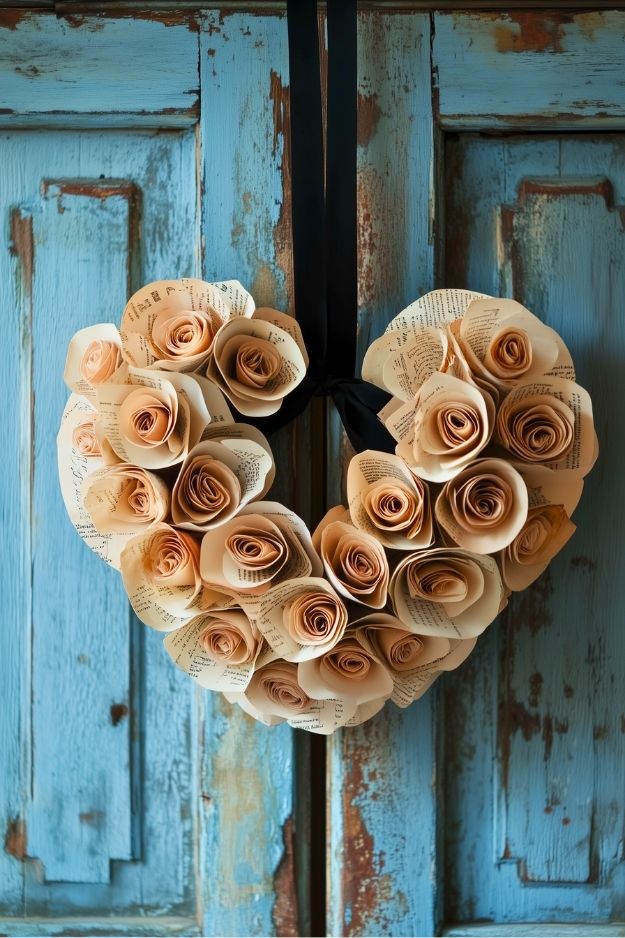 This book-page wreath is so pretty, even if I know it would absolutely annoy a few book lovers. The rolled roses look soft and vintage in the best way, and that slightly yellowed paper gives it such a warm, old-soul vibe. I always wish I were this crafty with old books, because turning something worn-out into something this sweet feels like such an easy win.