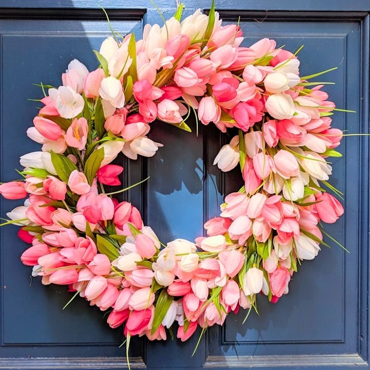This tulip wreath is so pretty I honestly thought it was store-bought at first, the kind you’d see hanging in a boutique window for way more than I want to admit.