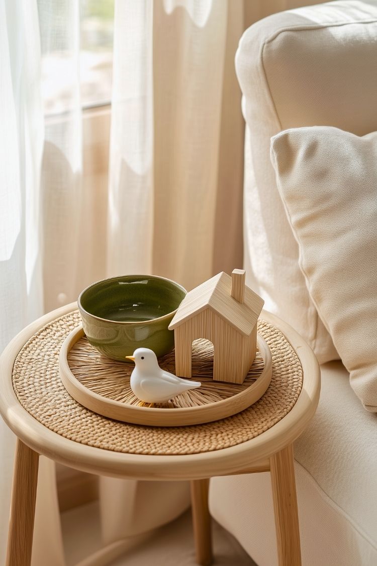 Who knows, a little whimsy goes a long way, and this setup leans into that soft, storybook charm that spring is so good at. The tiny birdhouse instantly makes the whole tray feel like a miniature garden scene, and the ceramic bird adds just enough playfulness without tipping into kitschy territory.