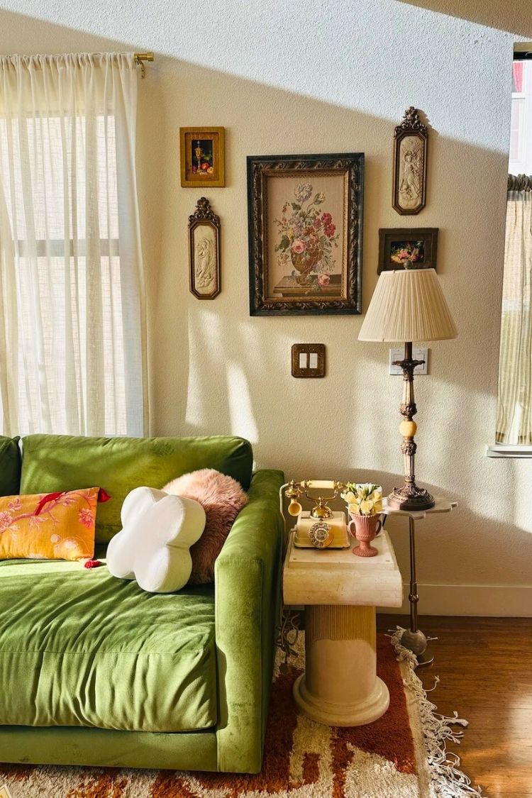 This living room is a masterclass in how to mix eras and still make it feel cohesive. I especially like the antique telephone on the side table next to the green sofa, which pairs so well with the whole setup. Even the lamp seems to tell something. Great works from U/Princess_Carolyn_II.