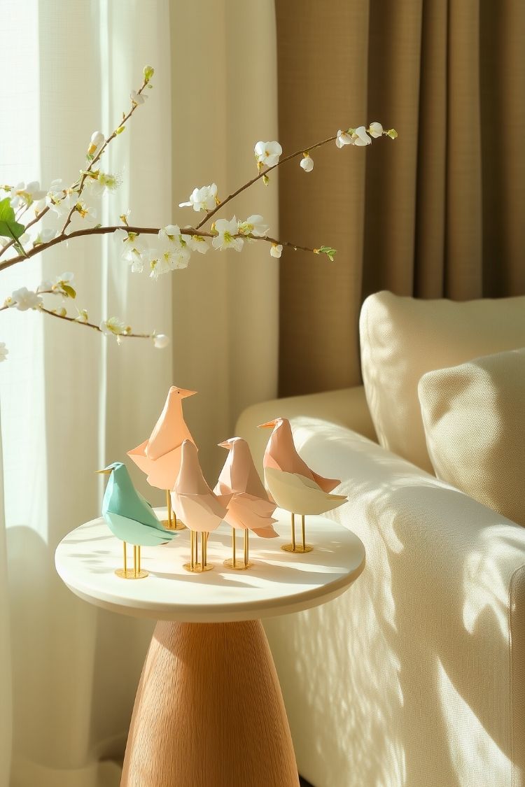I’m quite amazed by these cute decorations. They’re so playful about these little paper Origami birds because the pastel colors feel so soft and springy, especially with the sunlight catching their folded edges.