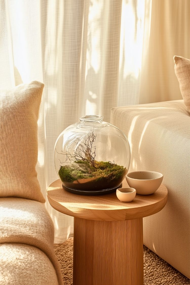 Last but not least, if you want to have something more unique and different in your living room this spring, having a moss bowl on your side table isn’t really a “weird” idea. There’s something so charming about a tiny terrarium glowing in the late-afternoon sun. It turns the whole table into a little world of its own, with soft moss and delicate greens that feel so magical.