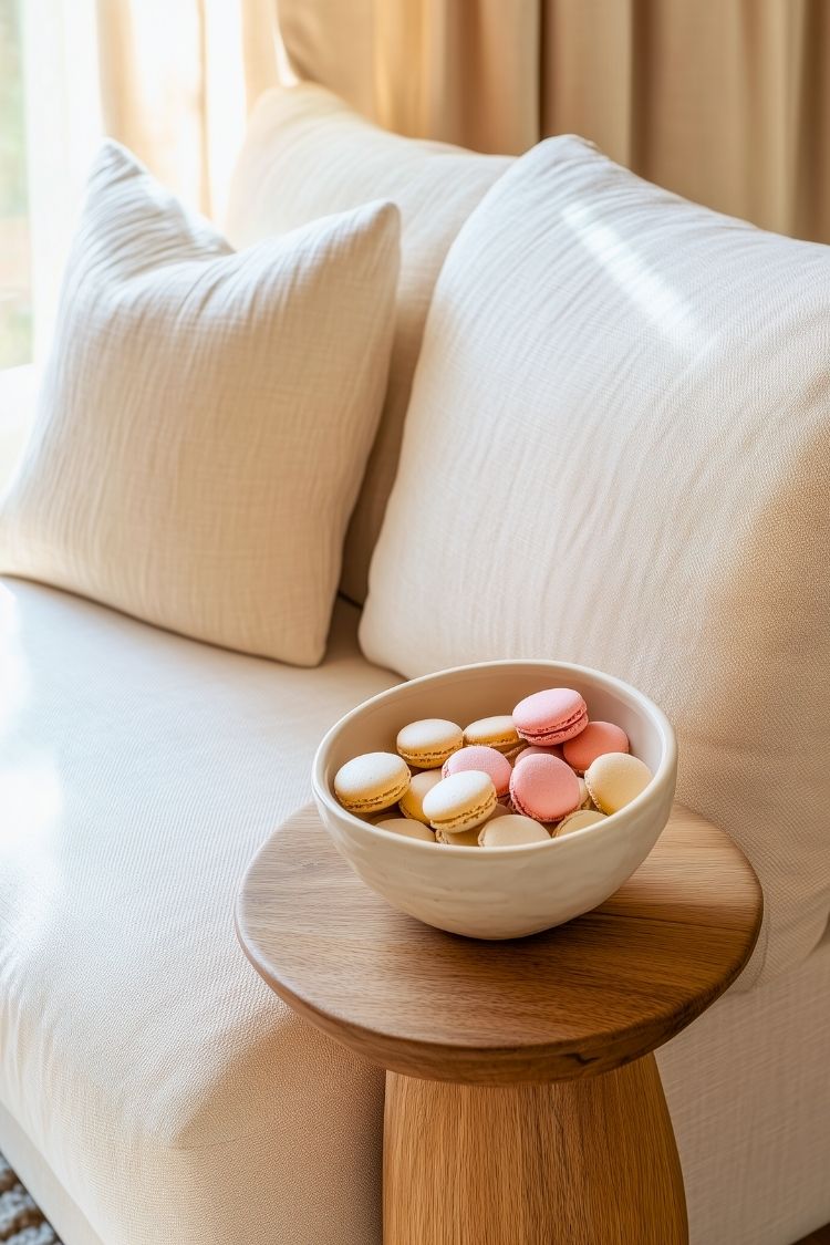 There’s something to say about this sweet idea in spring for a side table. The whole setup feels like the easiest little spring pick-me-up, and honestly, it works every single time. I’m amazed by the idea of having a big bowl of charming pastel macarons in the living room. It especially works at this time of the year when we usually have guests visiting our houses.
