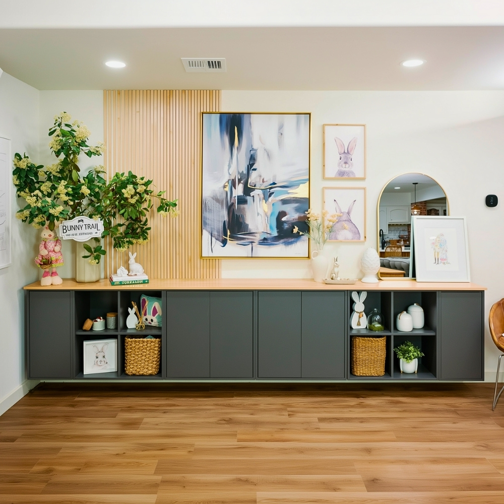 Decorating small spaces can be a real puzzle sometimes, but I like how these tall bunny figures add height while keeping the rest of the table practical. We all know entryways often turn into “drop zones” for keys and mail, so keeping things functional is key. This modern-meets-farmhouse idea is a smart way to style your home on a budget. You get a high-end feel without needing to spend a lot of money.
