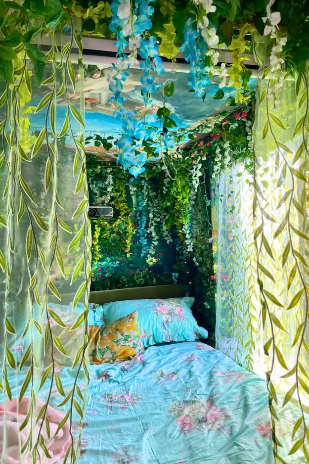 u/plantbasedmenace’s bed nook looks like the kind of bed Aurora from Sleeping Beauty would pick if she got to redecorate her castle herself. It’s dreamy, overgrown, and just the right mix of soft and dramatic, like nature snuck inside and decided to stay for tea.