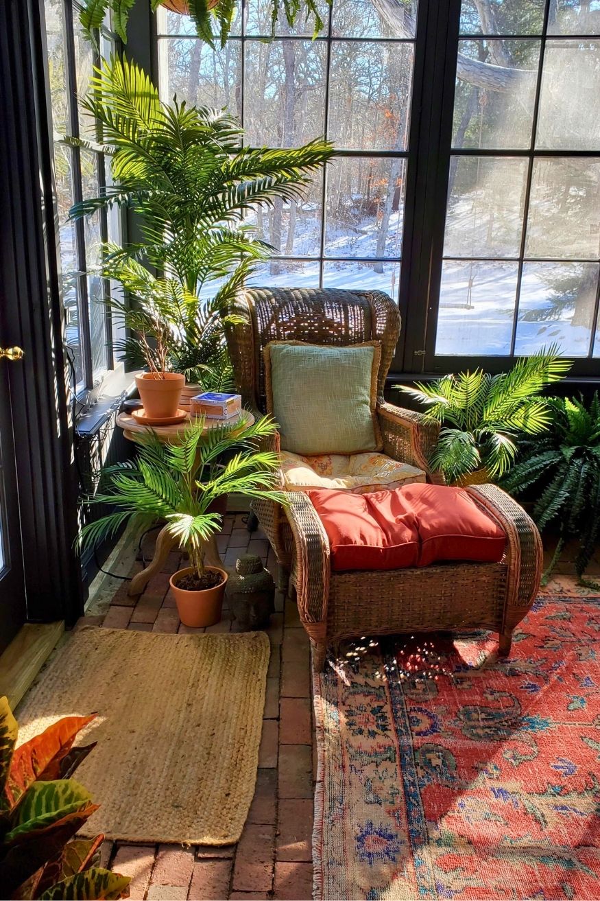 I think I can spend my whole day staying here with just a book. I love how convincing the faux ferns and palms look, especially since the space isn’t heated and real plants would struggle anyway. The whole setup delivers that warm, cozy vibe that you want in the coldest months. Credit: u/Fountainspider