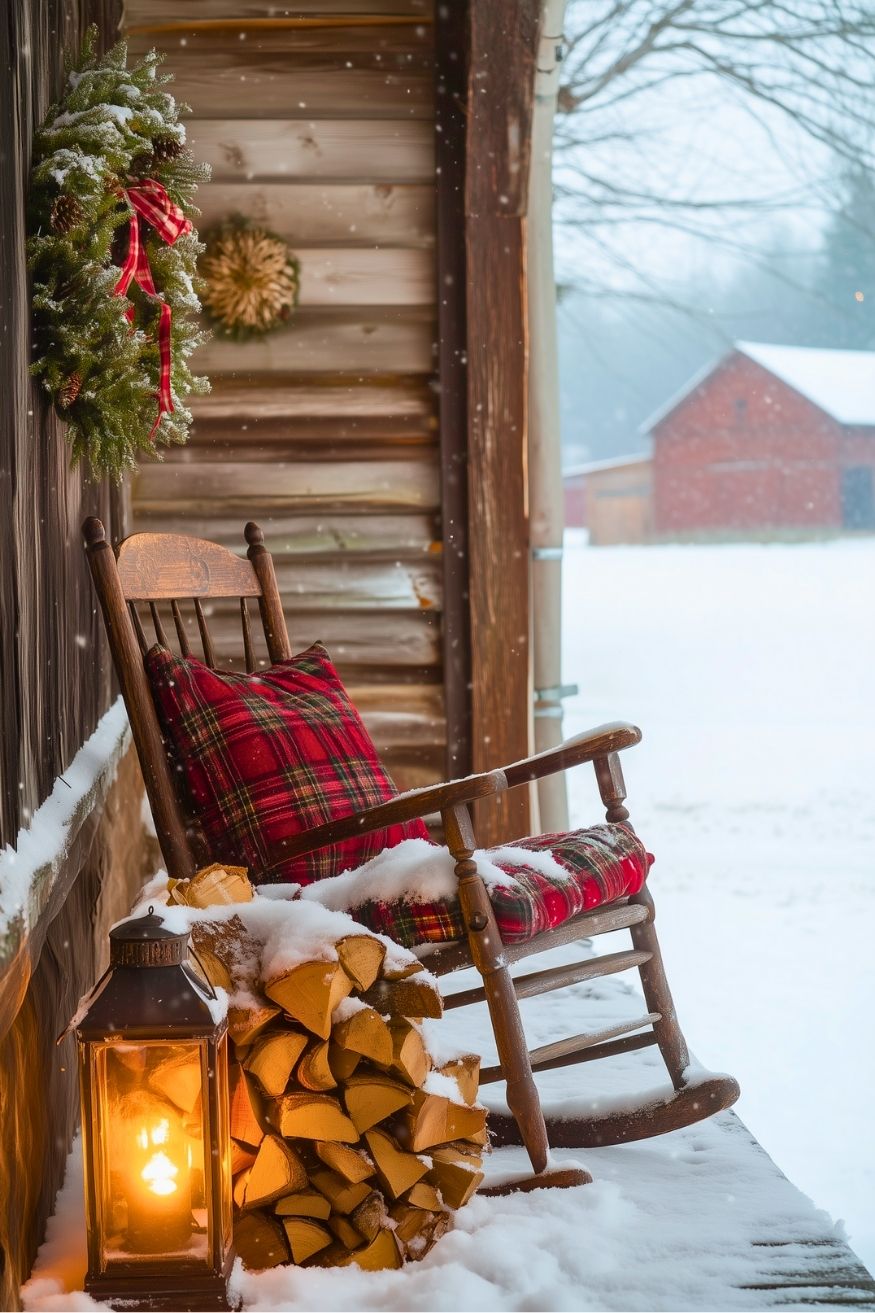 Even when you’re living in a farmhouse at the outskirts of the city, you can always have your own way to transform your front porch. The old wooden rocker, the red plaid cushion, and the fresh stack of firewood all will make you feel like stepping into a holiday memory. It’s the kind of spot where you’d sip something hot and just take in the snow falling across the yard.