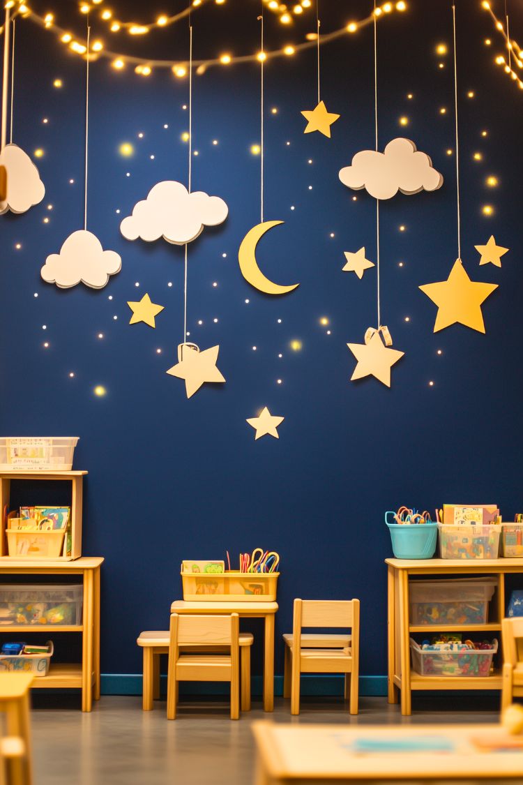 With just a simple touch of paper cutting and carefulness, you can also transform a boring wall into something dreamy for the kids. This one’s giving calmness, a dreamy and magical feeling at the same time. The moon, the stars in space, are where your students can dream big, but still stay grounded in their lessons.