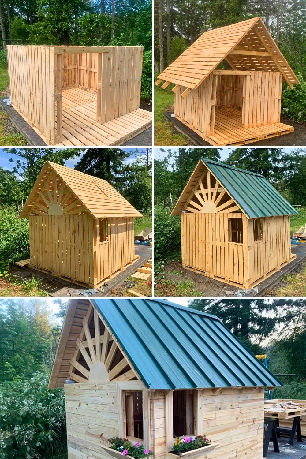 I’m always impressed when a backyard project looks this polished while still being made from reclaimed pallets, and u/DJ_poopmypants really nailed that balance here. The clean siding, flower boxes, and sturdy roof make the play house feel like a real little shed, which is perfect for parents who want easy garden DIY play houses that still look great in the garden.