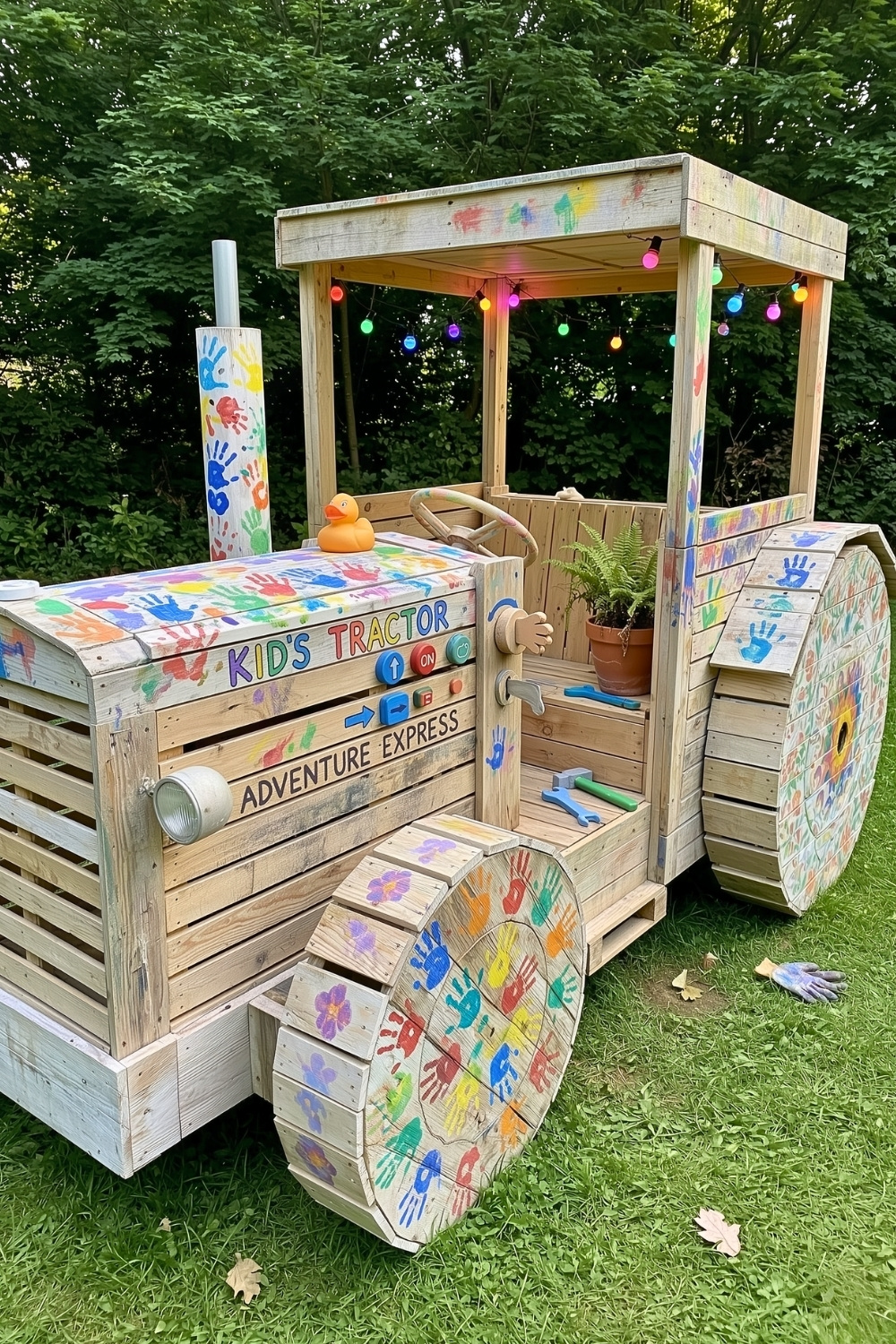 I love how a few basic pallets can become a full-blown imagination station for the backyard. Building with colorful handprints and simple wood crafts techniques creates a sturdy piece of outdoor furniture that keeps the kids busy for hours. Parents often struggle to find affordable, large-scale play structures, so a project like this provides a bright, personalized touch without a high price tag.