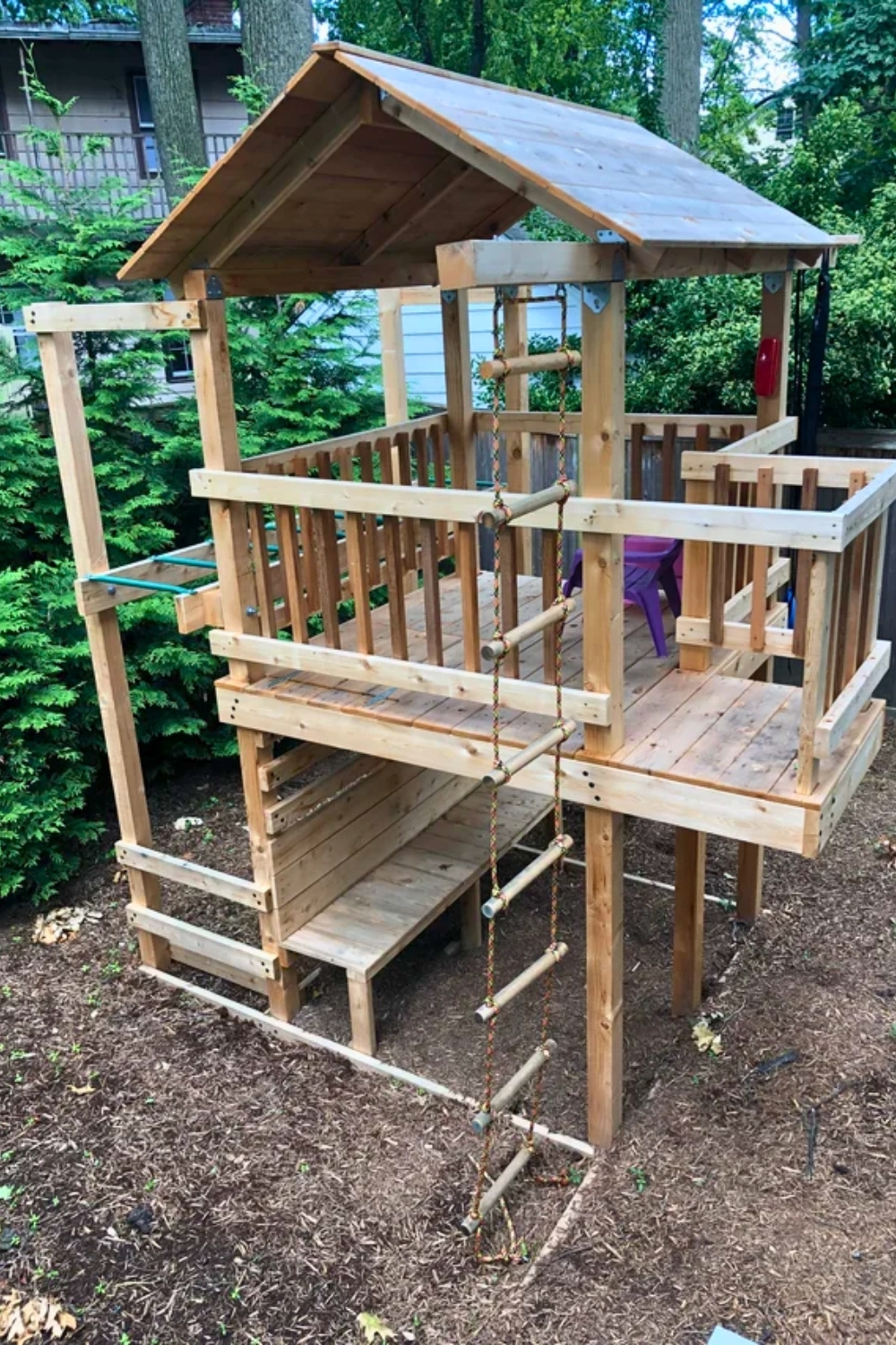 Whenever I see a raised structure like this one by u/TheBammBoozlerr, I immediately think about how practical it is for a busy backyard. The porch, steps, and bright roof create a cozy outdoor play room while keeping kids above muddy patio floor spaces, which is such a simple but smart solution for everyday play.