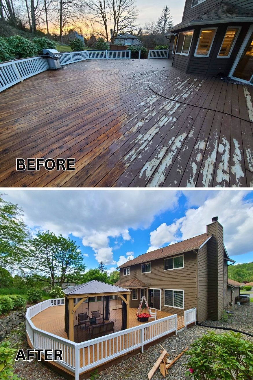 About 50 hours of pressure washing, sanding, and oil-staining just to make the wood safe for his dog and bring back that warm cedar tone. It’s one of those DIYs that feels totally achievable but still impressive because it’s done carefully, not rushed. You can see how detailed and how much effort he put into it.