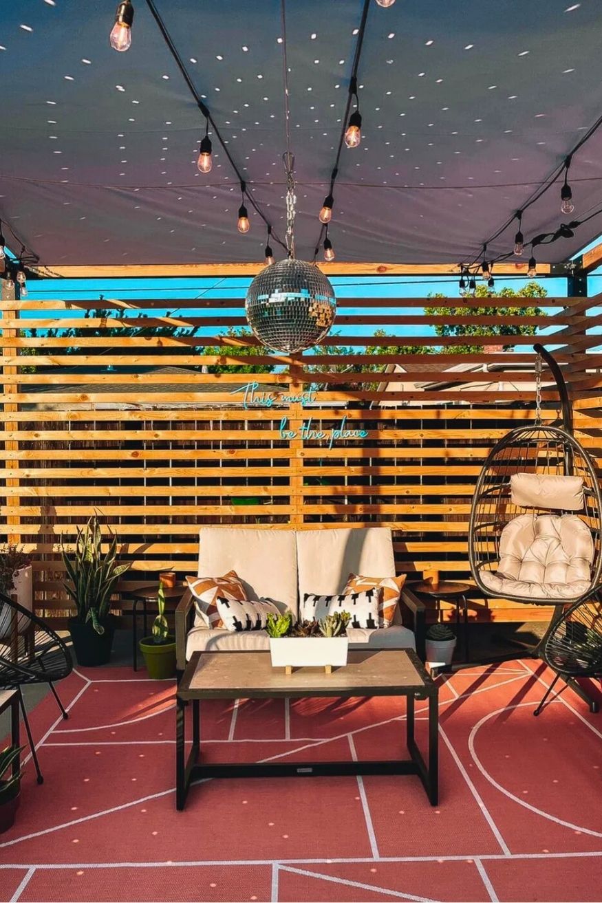 This one made me stop scrolling because it proves how much personality a few unexpected pieces can add. The disco ball alone shifts the whole vibe from standard patio to something playful and slightly retro, especially paired with that neon sign glow. The egg chair anchors everything visually, turning the setup into a cozy focal point rather than just scattered seating. It feels creative but is still achievable with smart budget choices. Shout out to u/Low_Fat_Bureaucrat.