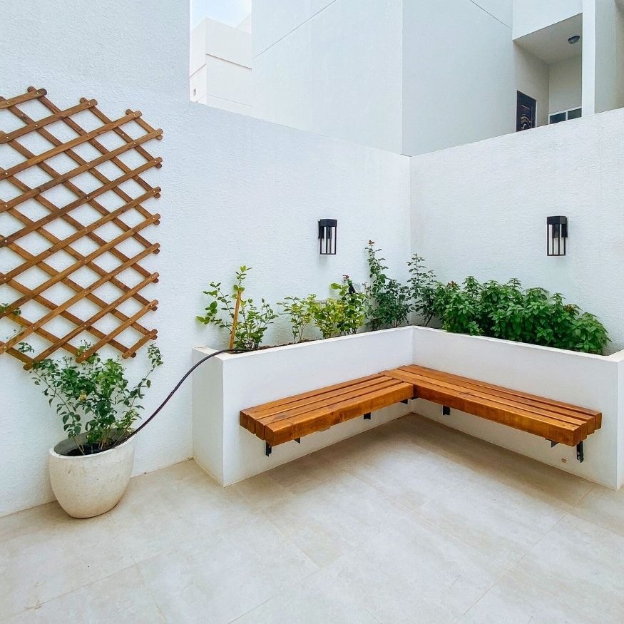 Even the pergola curtain, temporary or not, makes the space feel softer and more livable, like somewhere you actually linger.