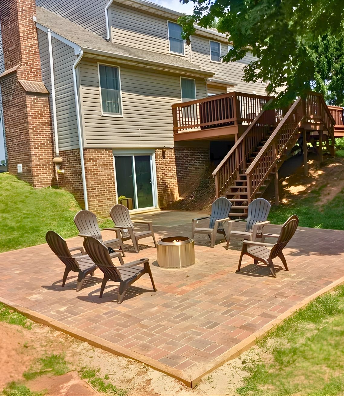 The fire pit is a smart finishing touch that turns the patio from a construction project into an actual hangout spot where you can imagine long evenings around the fire.