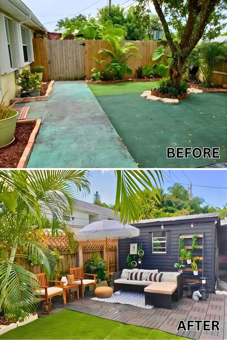 I like how u/RichWhalePoorWhale’s makeover shows that a budget patio doesn’t have to look pieced together if the choices stay consistent. Swapping out old artificial turf for interlocking deck tiles instantly cleaned up the space, and the fact that they clip together like Legos makes it feel approachable for anyone hesitant about DIY.